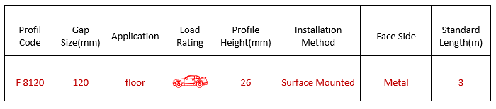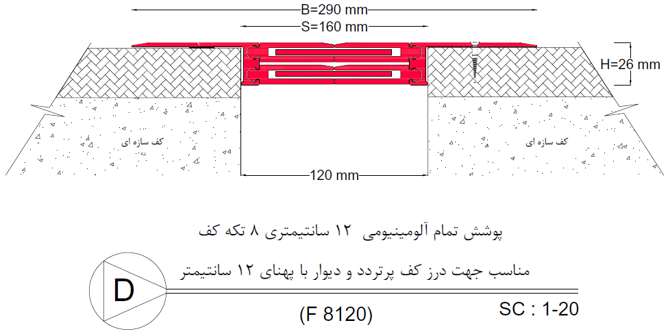 F 8120 "قابل ارائه برای درز انبساط تا پهنای 20 سانتیمتر"